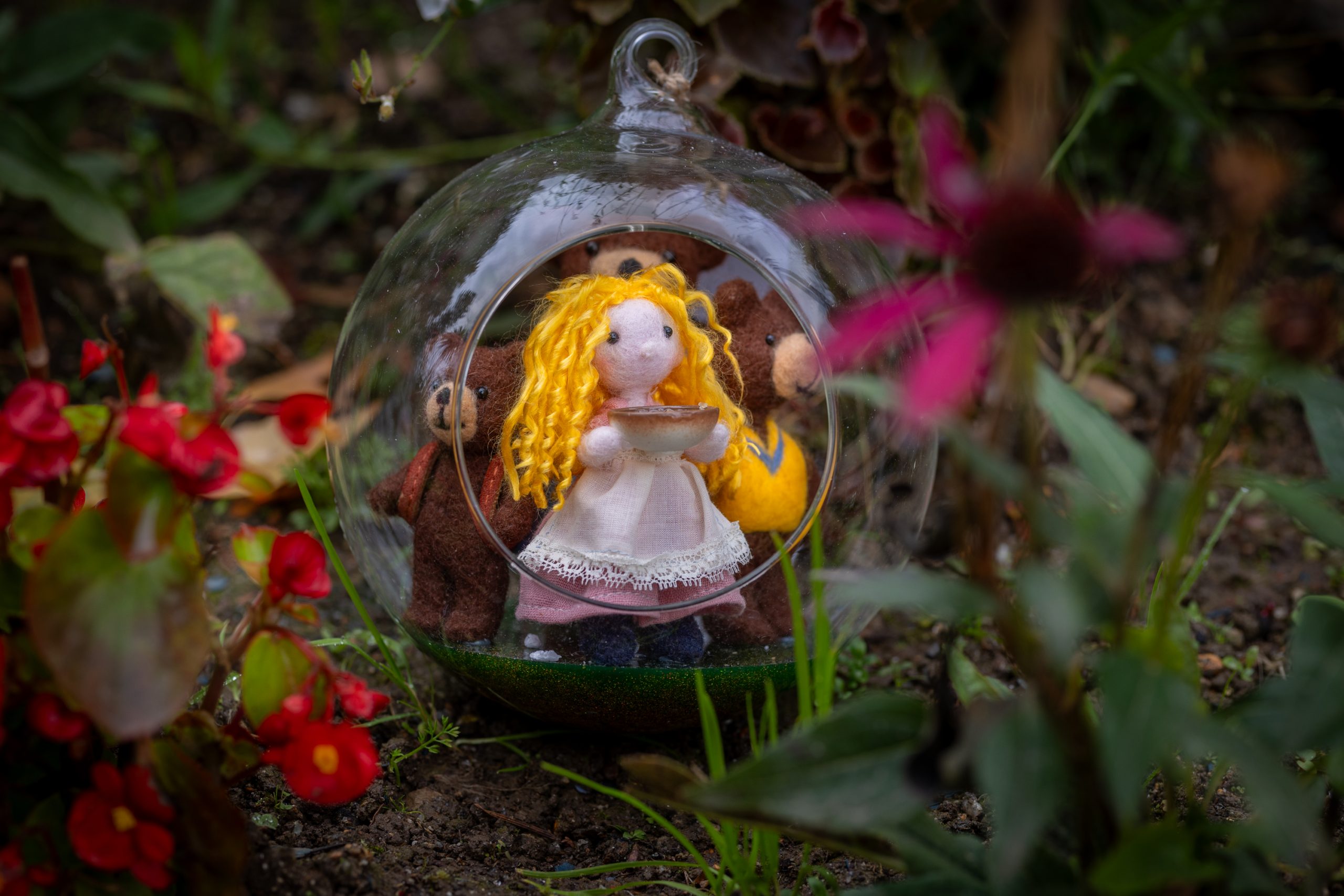 Bola colgante de cristal Ricitos de Oro y los tres osos