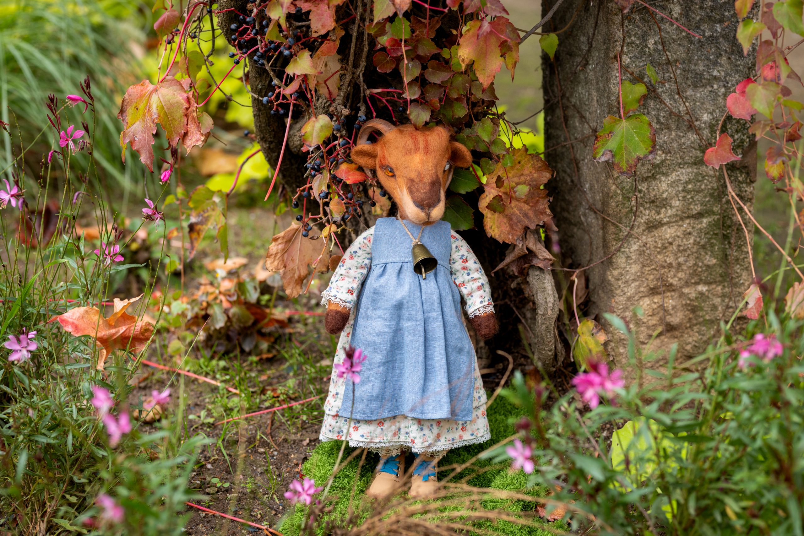 Está realizada en lana de oveja gallega, lana merina extrafina de alta calidad con la técnica de fieltro de aguja. Su vestimenta de algodón, lino y encaje valencienne está realizada a mano con mucho mimo.